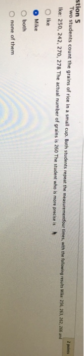 Solved Stion 5 2 Points Two Students Count The Grains Of Chegg Com